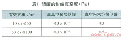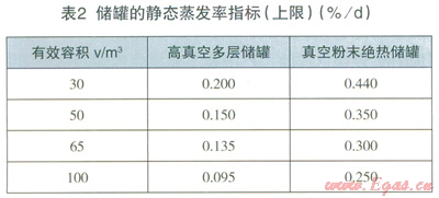 (2)設計文件應對LNG儲罐提出明確的保冷指標要求。不論是真空粉末絕熱儲罐還是高真空多層絕熱儲罐對保冷都應有明確的要求,即某體積的儲罐都應對應相應的真空度和靜態(tài)蒸發(fā)率,超過這些數(shù)值指標就達不到保冷效果,蒸發(fā)氣體產(chǎn)生量就會增加,應及時抽真空處理或采取其他措施。綜合相關規(guī)范和工程實踐,提出儲罐的保冷指標要求,儲罐的封結真空度指標要求見表1,靜態(tài)蒸發(fā)率指標(上限)要求見表2。