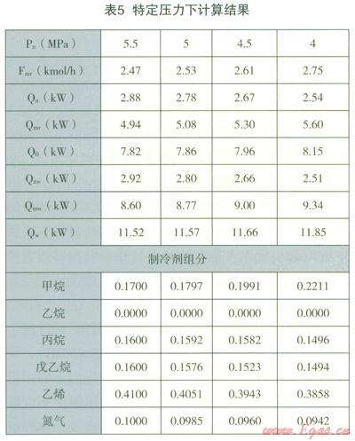 在保證UA值基本不變的情況下,通過調整組分,在特定壓力下進行計算,得出表5所示結果: