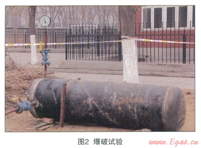 爆破試驗的目的在于,一旦金屬管道由于腐蝕在修復前就已穿孔,或者修復后由于管道外壁腐蝕點不斷擴大,甚至由于外力原因發(fā)生輕微破損,管道內(nèi)襯能否在這些腐蝕、破損處白行承壓并保證管道正常運行。