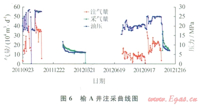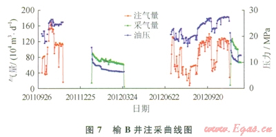 榆林南注采試驗(yàn)井榆A和榆B井注氣過程中,井筒壓力損失分析見表7所示,計(jì)算壓力損失與實(shí)測的誤差小于2%。現(xiàn)場試驗(yàn)表明,室內(nèi)節(jié)點(diǎn)分析軟件模擬計(jì)算結(jié)果符合氣井實(shí)際運(yùn)行工況。