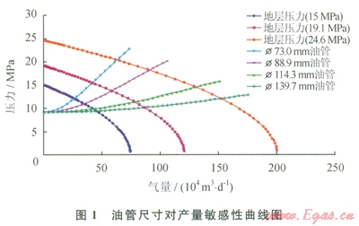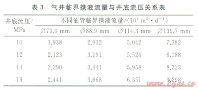 如表4所示,無阻流量為200×104m3/d時(shí),采用Æ139.7mm可以滿足86×104~126×104m3/d的采氣要求;無阻流量為80×104m3/d時(shí),采用Æll4.3mm可以滿足35×104~65×104m3/d的采氣要求。