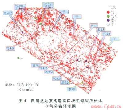 3)建立測(cè)井泊松比—地震資料的關(guān)系,并將關(guān)系用于氣水預(yù)測(cè),形成平面預(yù)測(cè)成果。