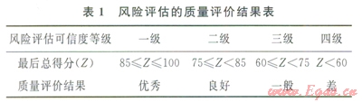 依據(jù)對評價結(jié)果的量化程度,將風險評估質(zhì)量評價方法大致分成定性和定量兩大類。定性方法主要有專家評分法、風險矩陣法、檢查表法和影響圖法等;定量方法主要有風險函數(shù)法、關(guān)聯(lián)度函數(shù)法和指標體系等。由于指標體系法其評價方法簡單、易于操作,故筆者采用指標體系法來進行質(zhì)量評價。