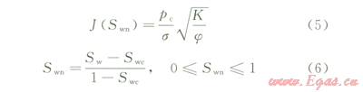 J函數(shù)法是以壓汞數(shù)據(jù)為基礎(chǔ),針對(duì)巖石孔喉特征進(jìn)行研究的方法。因?yàn)閷?shí)驗(yàn)室測(cè)定的小尺寸巖樣的毛細(xì)管壓力曲線只能代表氣層中的一個(gè)點(diǎn),而要得到能夠表征整個(gè)氣層的毛細(xì)管壓力曲線,就必須將獲得的所有毛細(xì)管壓力資料綜合平均。為此,Leverett提出了“J”函數(shù)的概念和汁算公式: