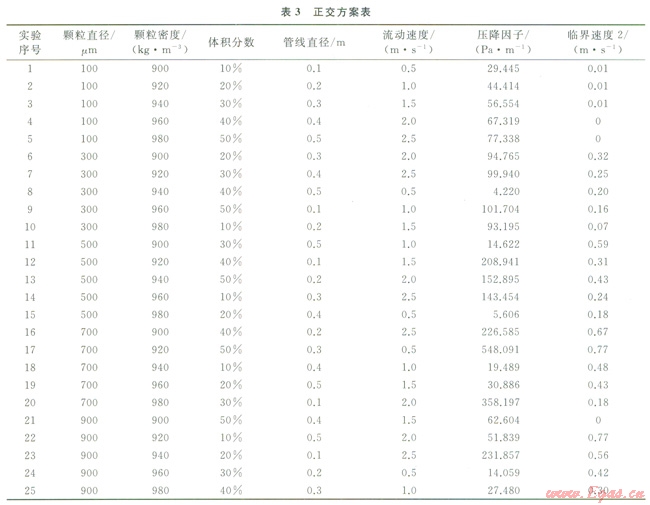 從表3及方差分析可以看出,顆粒直徑對“臨界速度2”的影響效果最大,因此,開展水合物顆粒流動過程中的生長、碰撞以及聚結(jié)研究對降低“臨界速度2”,進(jìn)而保證管線的安全輸送具有重要意義,同時(shí),以上結(jié)論還對“冷流技術(shù)”實(shí)現(xiàn)的作用原理(防止水合物聚結(jié),減小水合物顆粒直徑,進(jìn)而降低臨界速度)進(jìn)行了闡釋[13-15]。