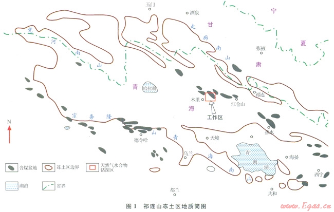 祁連山凍土區(qū)地處青藏高原北緣,多年凍土面積約為l0×104km2[22]。早燕山運(yùn)動使得祁連山地區(qū)局部拉張,形成一系列條帶狀的山間斷陷盆地,沉積一套侏羅系的河湖沼澤相含煤巖系[23],造成祁連山侏羅紀(jì)小型含煤盆地星羅棋布,組成祁連山含煤盆地群,其中疏勒河 大通河流域就分布有木里、瓦烏寺、雪霍立等11個含煤盆地(圖1)。