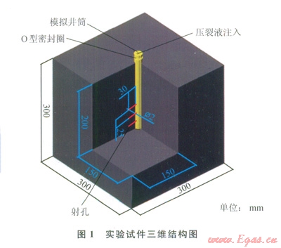 以上情況與定向射孔參數(shù)和目標(biāo)地層性質(zhì)(地應(yīng)狀態(tài)、地層非均勻性等)密切相關(guān)。然而目前對(duì)此問研究甚少。筆者采用大型真三軸水力壓裂物理模擬驗(yàn)系統(tǒng)[13]進(jìn)行了室內(nèi)物模實(shí)驗(yàn),研究了定向射孔水壓裂人工水力裂縫的形態(tài)和影響因素,并對(duì)完井和裂施工提出了一些工程建議。