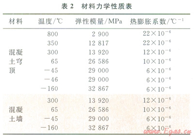在外界溫度變化下,儲罐內的LNG達到沸點蒸騰,從而產生氣壓。為保護混凝土外罐免受不斷增加的氣壓作用,需通過穹頂上部的安全閥將超壓的LNG蒸氣排出。在此過程中,LNG蒸氣或被點燃發(fā)生火災。在這種偶然工況下,國內現(xiàn)有的混凝土規(guī)范尚無規(guī)定,而國外的ENl473等規(guī)范僅給出一般性的條款,沒有具體的計算公式。所以發(fā)生安全閥火災時,儲罐各部位的溫度怎么分布?火災導致的混凝土熱應變是否達到了極限應變等,這些需借助大型有限元軟件進行詳細的熱力學分析才能得到,指導后續(xù)設計工作。