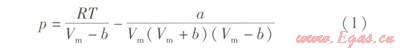 P-R方程屬于半經(jīng)驗(yàn)方程,該方程是對(duì)R-K方程的修正,其表達(dá)式見(jiàn)式(1)。