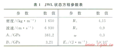 式中p為壓力;V為相對(duì)體積;E0為初始比內(nèi)能,A1、B1、R1、R2、w為材料常數(shù)。