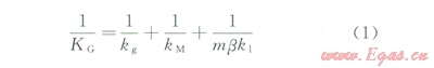 為膜阻力;為液相側阻力,m為相平衡常數(shù),b為化學增強因子,K1為液相傳質系數(shù)。