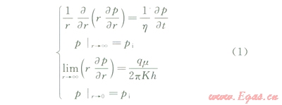 式中r為徑向距離,m;p為地層壓力,MPa;h為導壓系數(shù),m2·MPa/(mPa·s);h=K/(mcj);m為流體黏度,mPa·s;c為地層綜合壓縮系數(shù),MPa-1;t為生產(chǎn)時間,ks;pi為原始地層壓力,MPa;q為井產(chǎn)量,m3/ks;h為儲層厚度,m;K為巖石滲透率,D;j為孔隙度。