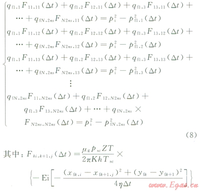 式(7)中變量為每一個線匯產(chǎn)量,這樣就建立起了壓裂水平井裂縫與氣藏耦合的瞬態(tài)滲流數(shù)學模型。