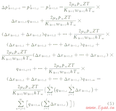 式(5)中第一項表示第k+1條裂縫第j及之前線匯單元產(chǎn)量在裂縫內(nèi)流動時產(chǎn)生的壓降;第二項表示第k+1條裂縫第j個之后線匯單元產(chǎn)量在裂縫內(nèi)流動時產(chǎn)生的壓降。