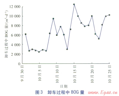 西部站自2011年l2月28日投入運行以來,運行正常。下面結(jié)合實際生產(chǎn)過程中的BOG數(shù)據(jù),對日常運行以及卸車過程中產(chǎn)生的BOG量進行分析。