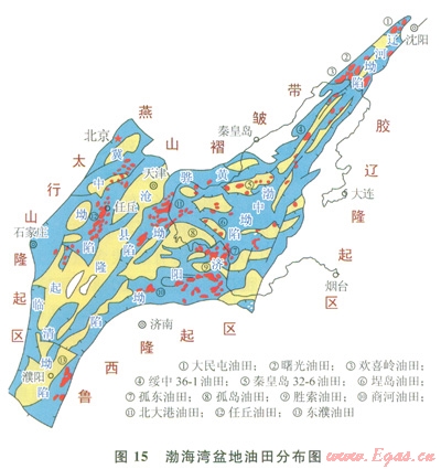 渤海灣盆地油氣勘探大規(guī)模始于20世紀50年代;60-80年代是陸地區(qū)油田發(fā)現(xiàn)的高潮期,先后發(fā)現(xiàn)了勝利油田、大港油田、華北油田、遼河油田、中原油田;20世紀80年代以來,渤海海域接連發(fā)現(xiàn)一批大油田。渤海灣盆地目前已發(fā)現(xiàn)數(shù)百個油田及一批中小氣田;原油儲量累計上百億噸,天然氣儲量累計約2000×108m3,主要是溶解氣;石油主要形成于新生界,氣層氣主要形成于古生界;呈現(xiàn)出原油非常富、天然氣相對少的格局。