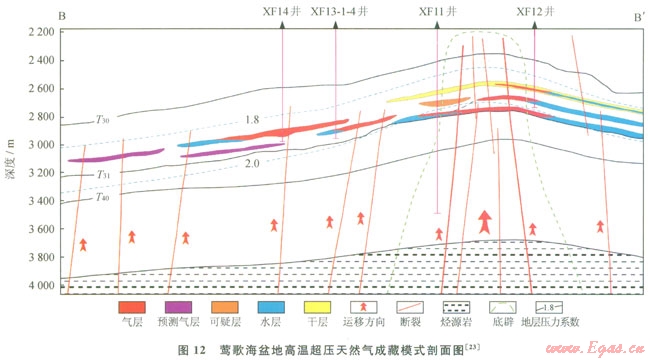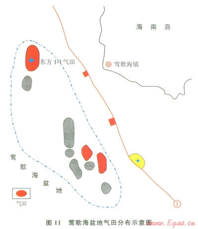 鶯歌海盆地油氣勘探始于20世紀50年代,經(jīng)過多年來持續(xù)不懈地勘探,在鶯中凹陷中央背斜帶的背斜和巖性圈閉獲得了一批重要發(fā)現(xiàn),其中東方l-l氣田和東方l3氣田(包括東方l3-1和東方13-12)都是千億立方米級別的大氣田。勘探與研究成果均顯示鶯歌海盆地是一個氣型盆地。
