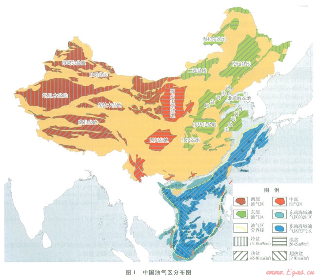 在“三橫四豎”的棋盤格局中,為構(gòu)造 熱體制不同的沉積盆地群。處于東南沿海的東海海域盆地和南海海域盆地(東海盆地、臺西盆地、臺西南盆地、珠江幾盆地、北部灣盆地、鶯歌海盆地、瓊東南盆地、中建南盆地、萬安盆地、曾母盆地和文萊沙巴盆地等)基底主要為年輕的島弧褶皺帶,盆地為大陸邊緣盆地,現(xiàn)今大地熱流和地溫梯度高 特高,屬于熱盆和超熱盆。夾持在大興安嶺—太行山—武夷山板內(nèi)造山帶與遼東—膠東—東南沿海造山帶之間的沉積盆地,包括了在古老結(jié)晶基底上的多期盆地(渤海灣盆地、南華北盆地、蘇北南黃海盆地、江漢盆地)及在海西褶皺帶上發(fā)育的斷陷 坳陷盆地(松遼盆地、南襄盆地等),現(xiàn)今大地熱流和地溫梯度高,屬于熱盆。處于賀蘭山—龍門山—橫斷山與太行山—武夷山造山帶之間沉積盆地,包括在古老結(jié)晶基底上的多期盆地(鄂爾多斯盆地、四川盆地),現(xiàn)今大地熱流和地溫梯度中等,屬于溫盆。賀蘭山—龍門山—橫斷山以西的、我國陸上的沉積盆地,包括了在古老結(jié)晶基底上的多期盆地(塔里木盆地)及在褶皺帶上發(fā)育的多期盆地(準噶爾盆地、吐哈盆地和柴達木盆地等),現(xiàn)今大地熱流和地溫梯度低,屬于冷盆。