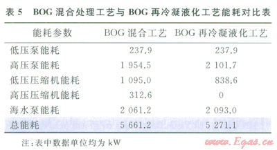 4)BOG進入再冷凝器前進行預(yù)冷,可在處理相同BOG量時降低再冷凝器的壓力,從而節(jié)約壓縮機的能耗,節(jié)約率達(dá)l8.2%。