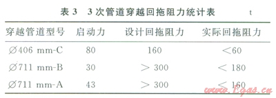 3)回拖階段,采用了新型地錨,保證了回拖施工的安全。采用漂管施工,降低了回拖阻力。外防腐層增加了新型玻璃鋼防腐技術,有效地保護了防腐層。經(jīng)過一系列技術創(chuàng)新,大大降低了回拖阻力,使得回拖施工順利完成。