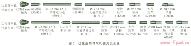 3)優(yōu)化鉆具組合。為了解決長距離管道穿越中對接成功后鉆桿推送阻力大而導致鉆桿彎曲破壞的問題,必須優(yōu)化鉆具組合,以保證推送力可以均勻地傳送。經(jīng)過理論計算和試鉆施工,得到了最優(yōu)的鉆具組合(圖3),可以承受超過60t的推進力,成功完成了3次管道穿越的推送施工。