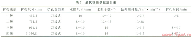 2)擴孔階段,采用了新型Æ168.3mm(V-150)鉆桿,改進了擴孔器類型,優(yōu)化了水力參數(shù),成功完成了擴孔施工,極大地提高了擴孔效率。