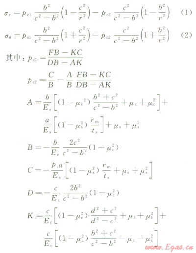 水泥環(huán)應(yīng)力分布及一界面處水泥環(huán)位移計算公式: