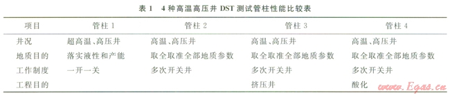 2.4 高溫、高壓井DST測試管柱性能比較