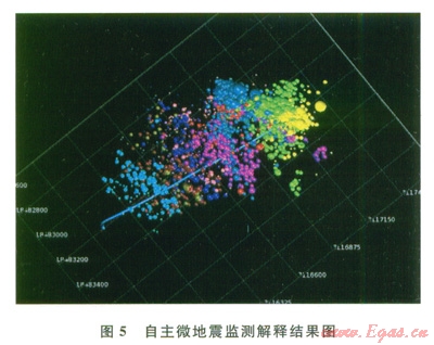 通過(guò)實(shí)時(shí)微地震監(jiān)測(cè)技術(shù)的應(yīng)用,對(duì)于完成壓裂施工、優(yōu)選射孔井段、優(yōu)化參數(shù)及提高產(chǎn)能具有很好的指導(dǎo)性[12]。本地區(qū)頁(yè)巖氣水平井壓裂微地震監(jiān)測(cè)結(jié)果表明,壓裂裂縫延伸方向受地應(yīng)力與天然裂縫雙重因素控制,已實(shí)施井微地震監(jiān)測(cè)結(jié)果表明實(shí)現(xiàn)了形成復(fù)雜裂縫網(wǎng)絡(luò)的體積壓裂目標(biāo),表明水平井分段體積壓裂工藝可滿(mǎn)足頁(yè)巖氣水平井改造要求(圖5)。