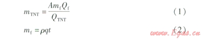 天然氣泄漏后與空氣混合形成蒸氣云,用TNT當(dāng)量法將發(fā)生爆炸的天然氣質(zhì)量按能量等效的原理?yè)Q算成TNT的質(zhì)量進(jìn)行近似處理,等效TNT質(zhì)量mTNT的計(jì)算式為[4]: