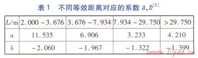不同等效距離對(duì)應(yīng)的系數(shù)a、b見(jiàn)表l[5]。