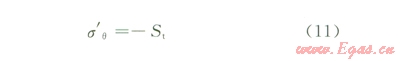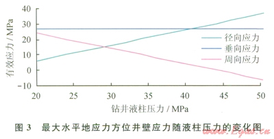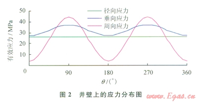 根據(jù)上面的分析可知,當(dāng)鉆井液密度過大時(shí),在q=0°和q=180°處井壁最容易發(fā)生破裂,該處井壁上的有效應(yīng)力為: