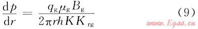 在模型所示的穩(wěn)定流過程中,基于達西定律的氣井徑向壓力降為: