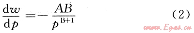 在氣井卸壓生產(chǎn)的過程中地層溫度基本恒定,影響天然氣中蒸汽含量變化的主要是壓力,當不考慮溫度的影響時,對式(1)求導得: