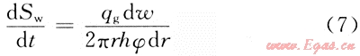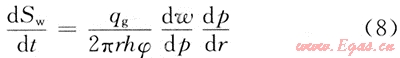 孔隙中地層水減小的體積量,應該等于氣體中增加的蒸汽量,所以式(5)與式(6)相等,即