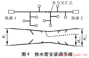 方法二:在水力交匯點熱電廠一側(cè)回水管道上安裝調(diào)節(jié)閥。