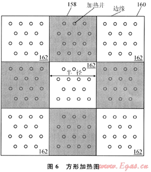 圖7為加熱井的另外一種陣列形式。在同心環(huán)形式的體積中,隨著環(huán)形體積向外移動其周長逐漸增大。所以間插加熱可減少外環(huán)體積的地層熱膨脹。