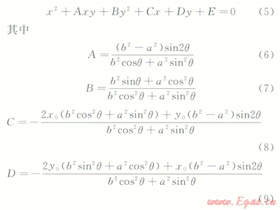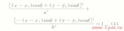 在平面內(nèi)要確定1個橢圓共需5個參數(shù):橢圓中心坐標(x0,y0)、長軸半徑a、短軸半徑b、長軸與x軸的夾角q。則在平面任意位置橢圓的方程可表示:
