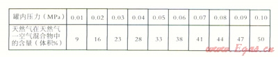 浸灌置換裝置研制時,是采用只混氣不置換,即用10份天然氣混1份空氣達劍蚩換的目的。應該說這是個創(chuàng)新、有價值的設想。有同行提出罐內會形成三角形或平面形界面。理由是天然氣比空氣輕一半,天然氣凝聚在上,空氣凝聚在下,形成界面。罐內天然氣、空氣永遠靜止有可能形成界面,實際情況是,置換過程中天然氣、空氣是在不停的流動、攪動,形成的是混合物。相當於煤礦瓦斯氣(甲烷約占50%,空氣約占50%),在運行過程中是不會形成界曲的。