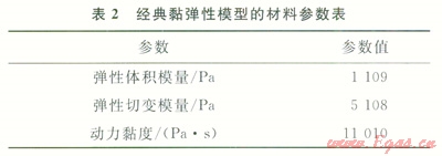 形成腔體模型后,需要對溶腔施加內(nèi)壓,通過施加法向應(yīng)力將儲氣庫內(nèi)壓分別設(shè)置為10MPa、15MPa、17MPa、20MPa、23MPa、25MPa和30MPa,選擇經(jīng)典黏彈性蠕變模型[8-9]計算在不同內(nèi)壓條件下溶腔不同直徑處的蠕變變形量。經(jīng)典黏彈性蠕變模型材料參數(shù)如表2所示。