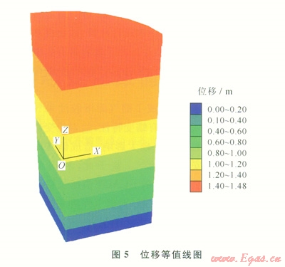由圖4可以得出,該模型中最大不平衡力逐漸收斂至零,表示所建儲氣庫溶腔模型具有收斂性。由圖4、5可以看出,在建立的土體模型中,由于重力場的作用,最大位移和最大應(yīng)力分別出現(xiàn)在模型的最底部。
