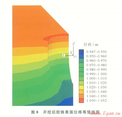 利用空模型形成腔體模型,通過設(shè)置groupl為空模型進行開挖,開挖后的模型如圖7、8所示。