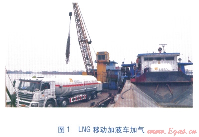 對(duì)于采用瓶組式LNG儲(chǔ)氣系統(tǒng)的改裝船,可以將提前充裝好的備用瓶組運(yùn)至碼頭,每只容積500L的鋼瓶充液后質(zhì)量約700kg,加氣時(shí)改裝船??吭诖a頭,用簡(jiǎn)易吊裝設(shè)備即能吊換LNG瓶組。如遇枯水期船舶無法靠岸,也可用小船運(yùn)輸LNG瓶組至改裝船進(jìn)行吊換。應(yīng)急加氣方式經(jīng)濟(jì)實(shí)用,對(duì)碼頭的要求低,適用于船舶油改氣項(xiàng)目初期試點(diǎn)階段。