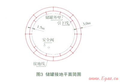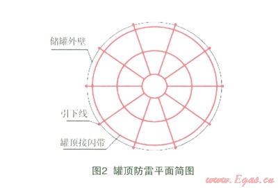 外方設(shè)計(jì)圖紙中沒有明確全容罐屬于幾類防雷建筑物,但從具體做法上判斷全容罐被劃為第二類防雷建筑物。其中防直擊雷的措施是在全容罐罐頂及罐壁安裝接閃帶,接閃帶采用截面為70mm:鍍錫裸銅絞線組成不大于10m×10m網(wǎng)格,引下線亦為截面為70mm:鍍錫裸銅絞線,間隔不大于10m。接閃帶之間采用壓接方式連接,用膨脹螺栓固定,固定點(diǎn)間距0.9m。對(duì)比國(guó)內(nèi)GB50057—2010《建筑物防雷設(shè)計(jì)規(guī)范》第4.3.1款規(guī)定,其防直擊雷設(shè)計(jì)更趨嚴(yán)格,并且在材料選擇上與發(fā)達(dá)國(guó)家一致。