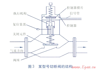 燃?xì)馇袛嚅y作為城鎮(zhèn)燃?xì)廨斉湎到y(tǒng)中重要的安全設(shè)備,廣泛地應(yīng)用于燃?xì)廨斉鋸S(chǎng)站、各級(jí)調(diào)壓站和調(diào)壓箱內(nèi)。燃?xì)馇袛嚅y安裝于調(diào)壓器的上游管道上,其主要功能是,當(dāng)調(diào)壓器出現(xiàn)工作異常情況而導(dǎo)致出口壓力過(guò)高或過(guò)低時(shí),及時(shí)切斷燃?xì)馔?span lang="EN-US">(超壓切斷或欠壓切斷),確保下游用戶(hù)和設(shè)備的用氣安全[1-2]。城鎮(zhèn)燃?xì)馇袛嚅y一旦關(guān)閉后,一般需要人工復(fù)位,不能自動(dòng)開(kāi)啟[3]。切斷閥的質(zhì)量和性能直接影響到城鎮(zhèn)燃?xì)廨斉湎到y(tǒng)的安全可靠性。
