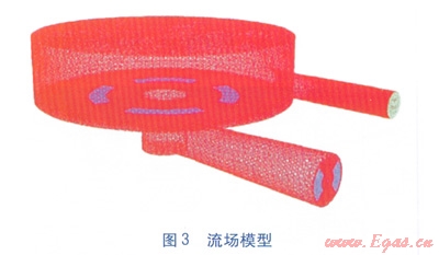 將在GAMBIT下建立的網(wǎng)格模型導(dǎo)入FLUENT中,得到如圖3所示的流場(chǎng)模型。因流場(chǎng)中氣體的流動(dòng)速度不高,可將模型視為一個(gè)定常不可壓縮流體的層流穩(wěn)態(tài)求解問題。采用FLUENT軟件缺省的分離求解器。操作環(huán)境設(shè)置在一個(gè)標(biāo)準(zhǔn)大氣壓下,考慮2軸負(fù)方向的重力加速度,在設(shè)置邊界值時(shí)充分利用樣機(jī)試驗(yàn)過程中所獲得的參數(shù)(如表l所示),運(yùn)用層流計(jì)算狀態(tài)下的組分輸運(yùn)模型,假設(shè)試驗(yàn)中的家用天然氣只含有CH4組分,并基于非結(jié)構(gòu)化網(wǎng)格下的SIMPLE算法對(duì)整個(gè)模型進(jìn)行模擬分析。