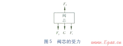 壓力調(diào)節(jié)器閥芯的受力見圖5。當(dāng)比例線圈未施加電流時(shí),線圈產(chǎn)生的電磁力Fd,為0,在閥芯重力G、彈簧作用力Ft、燃?xì)鈱?duì)膜片的作用力Fp共同作用下閥芯處于關(guān)閉狀態(tài)。