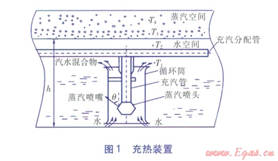 蓄熱器內(nèi)傳質(zhì)傳熱效果關(guān)鍵在于水循環(huán)擾動(dòng)程度,蒸汽充入時(shí)會(huì)引起水上下溫度不均,由此產(chǎn)生的密度差有助于水的擾動(dòng),但這種自然對流作用十分有限,水循環(huán)的主要驅(qū)動(dòng)力在于噴嘴噴射出的蒸汽流引發(fā)的強(qiáng)制對流。