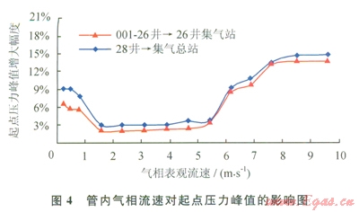 1)當(dāng)管內(nèi)氣相流速介于2~6m/s時(shí),清管中管道起點(diǎn)壓力超壓現(xiàn)象不明顯,清管時(shí)宜將管內(nèi)氣相流速控制在此范圍內(nèi)。