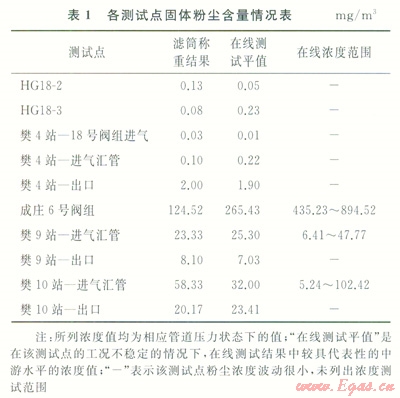 成莊6號(hào)閥組有l個(gè)測(cè)試點(diǎn)(圖4)。該點(diǎn)上游氣體部分來自粉塵含量較大的潘河區(qū)塊[10],通過測(cè)試可獲知其氣質(zhì)狀況。
